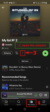 - Tap the three dots (...) next to the playlist name. This will open a menu of options.